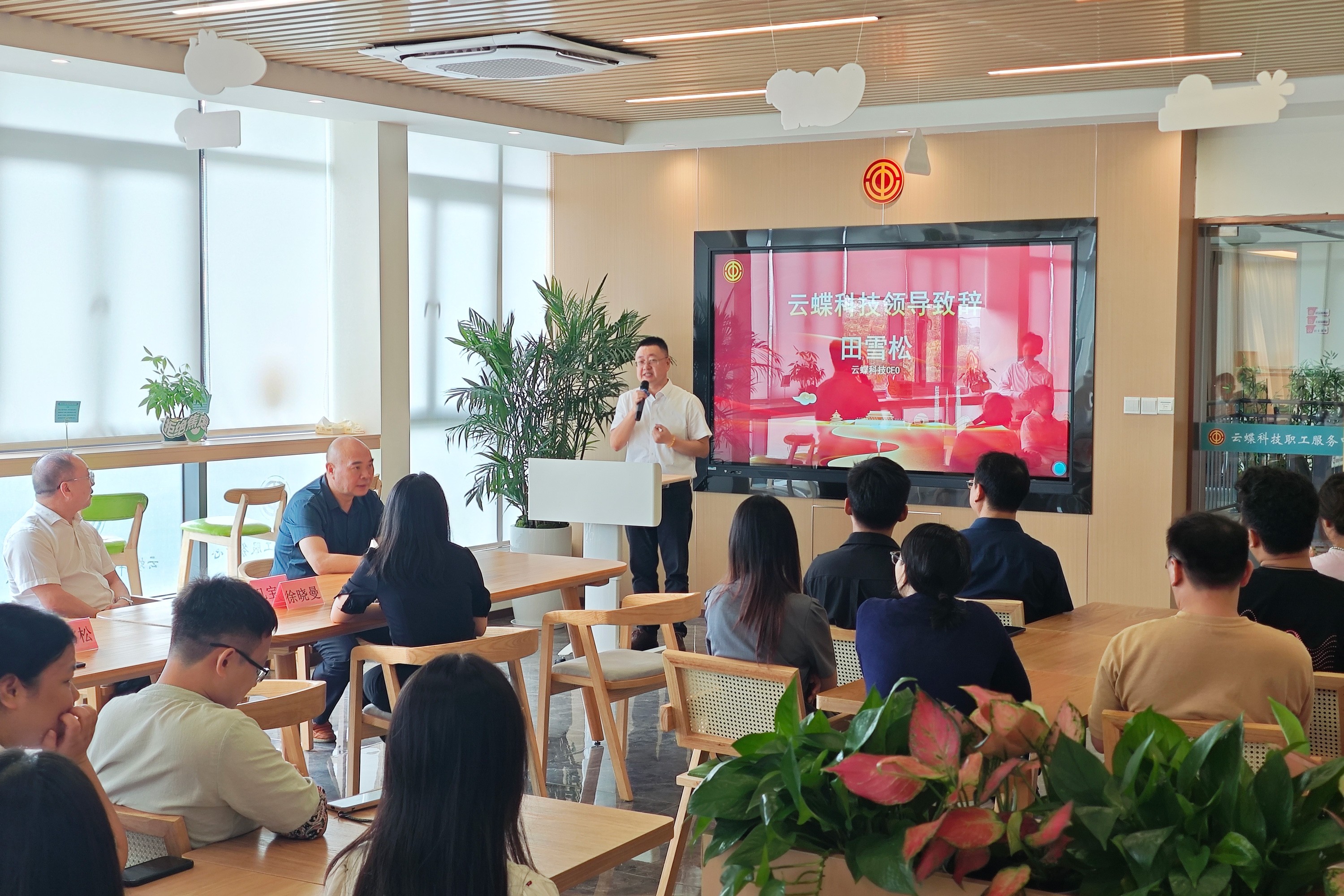 仪式上,田雪松博士代表企业向各级工会领导的到来表示热烈欢迎,并对各方在职工之家建设过程中给予的支持致以诚挚感谢。他指出职工是企业创新的主体,更是企业发展的根基。只有让职工在工作中获得尊重、在生活中感受温暖、在成长中拥有平台,才能充分激发团队的创新潜能。职工之家的建设,是云蝶将全心全意为职工服务理念落地的具体实践。