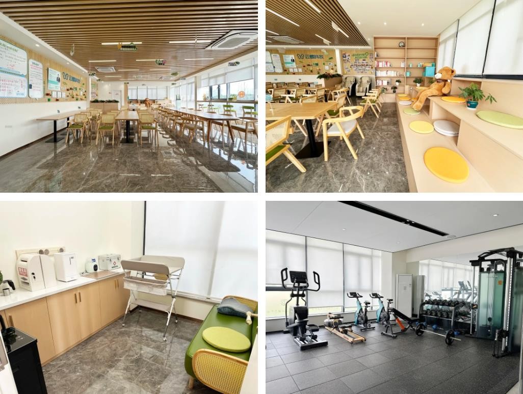 此次落成的职工之家整体设计以“实用、温馨、智能”为导向,重点围绕职工工作生活的核心需求布局功能区域:设置多媒体学习区,配备智能屏与研讨桌椅,支持技术交流与业务培训;设立图书角,提供技术前沿、人文社科等多领域书籍;配备健身房与按摩区,帮助职工缓解工作压力;打造职工风采展示墙,记录团队成长足迹;特设母婴室,为育儿期职工提供安全的照护空间。同时还通过人脸识别门禁、监控联网等模式实现无人化智能管理。今后,职工之家还将面向园区和周边其他企业职工开放服务。