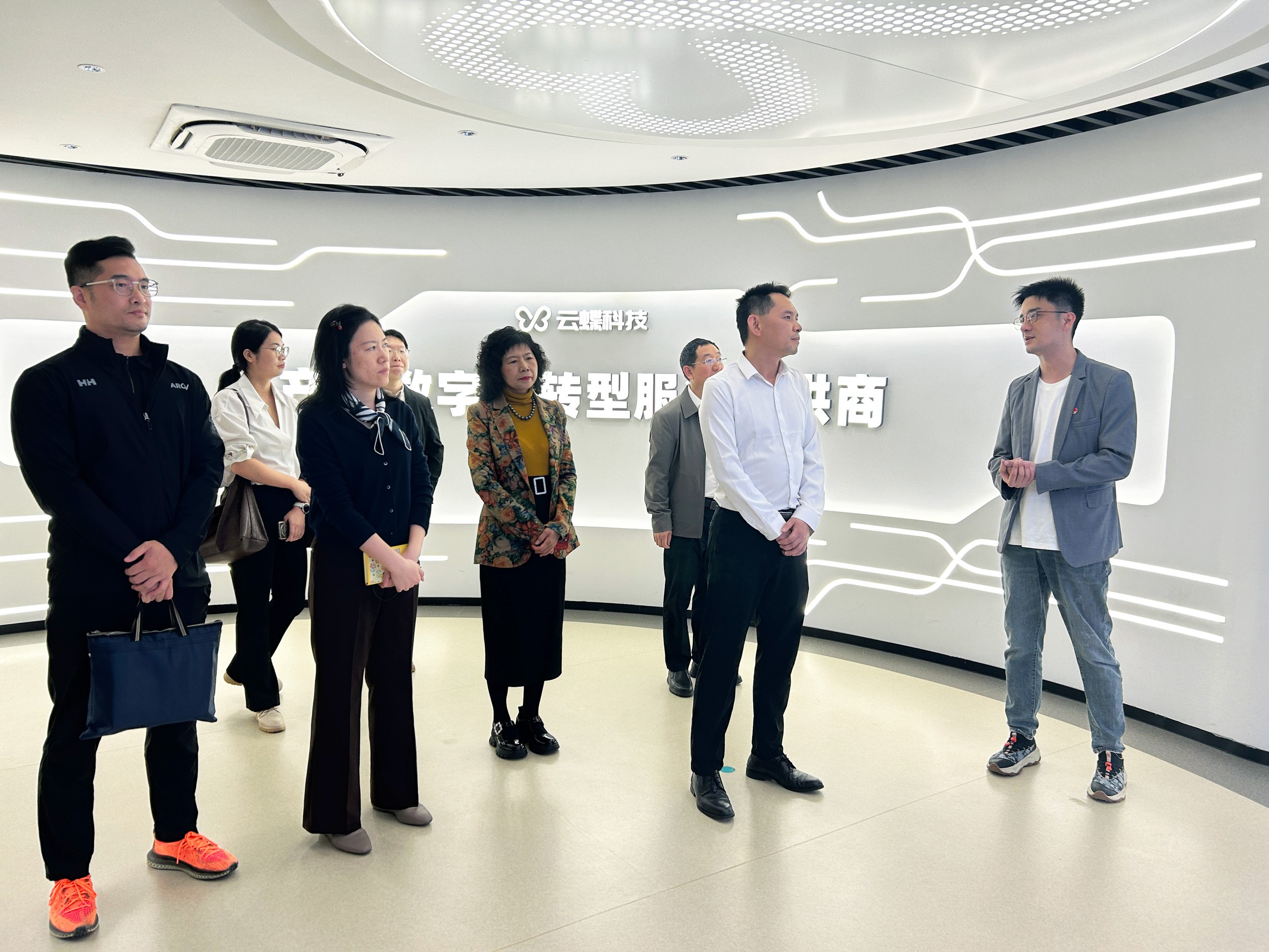 10月24日,广州市委“两新”工委副书记、市非公经济组织党委书记杨丹,海珠区委统战部副部长、区工商联党组书记廖慧莲率广州市工商联、海珠区工商联相关负责同志到访云蝶科技调研非公企业党建工作。云蝶科技总裁田雪松博士、党支部书记罗崇键陪同接待。