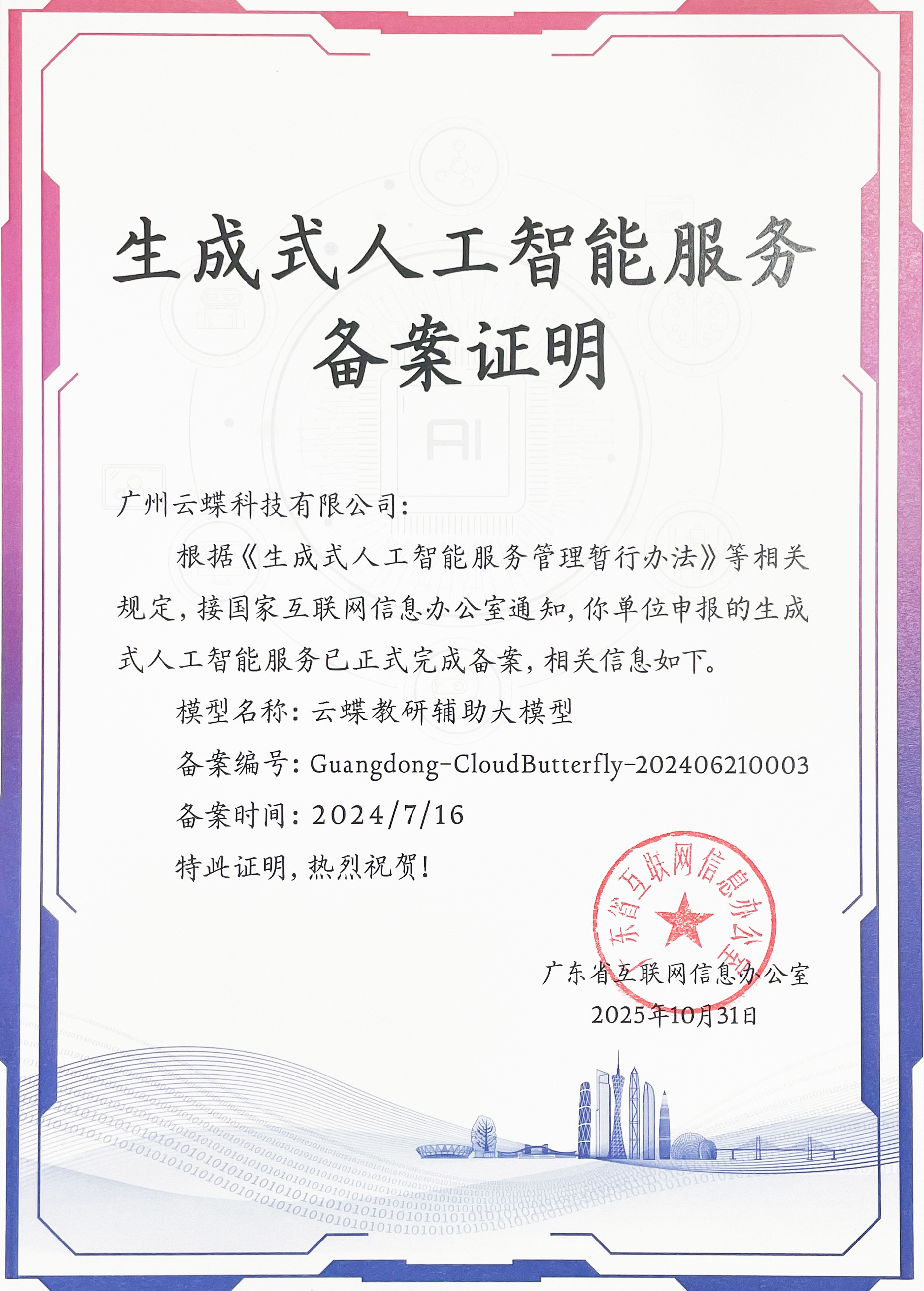 此次现场获颁备案证明,是对云蝶技术实力的高度认可。未来,云蝶科技将以此次备案为起点,持续深耕大模型技术研发,提升模型精准度与实用性,推动大模型在教育、医疗、政务等多领域的深度应用,以更智能、更专业的解决方案赋能千行百业高质量发展。