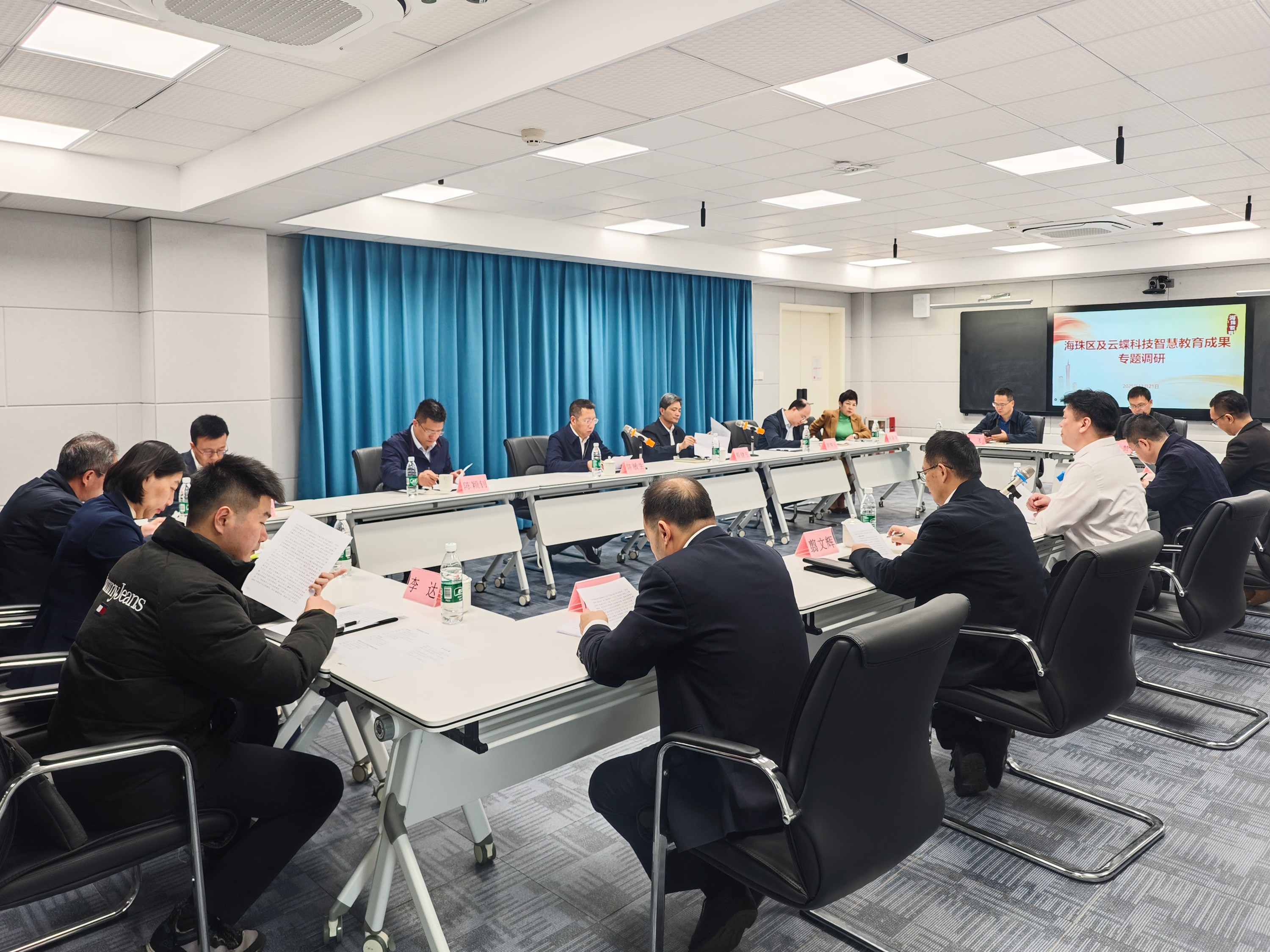 11月21日,为进一步了解海珠区智慧教育示范区建设情况,广州市教育局党委书记、局长陈敏生率调研组赴海珠区开展专题调研,并在云蝶科技与区教育局合作建设的区教育大数据应用中心举行座谈。