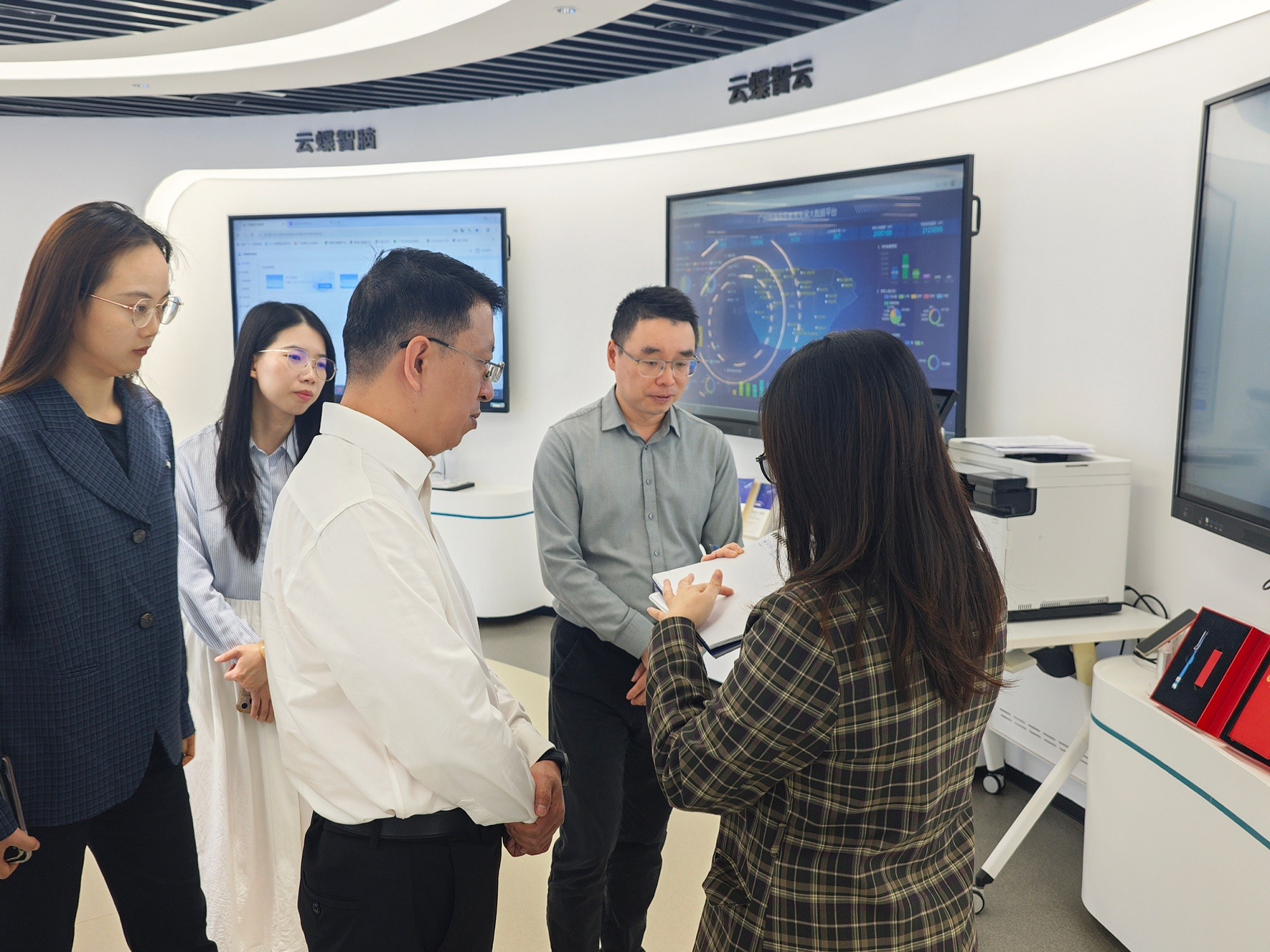 座谈前,胡洋一行首先参观了云蝶科技展厅,详细了解企业在人工智能技术研发与产业应用方面的创新成果。从教育领域智能化课堂改进与教学评价系统,到医疗领域以AI技术赋能诊疗服务提质增效的实践,云蝶科技的技术落地能力与应用成效获嘉宾高度认可。大家纷纷表示,此次实地参访加深了对企业的认知,为后续精准对接产业需求、赋能专业建设奠定了良好基础。