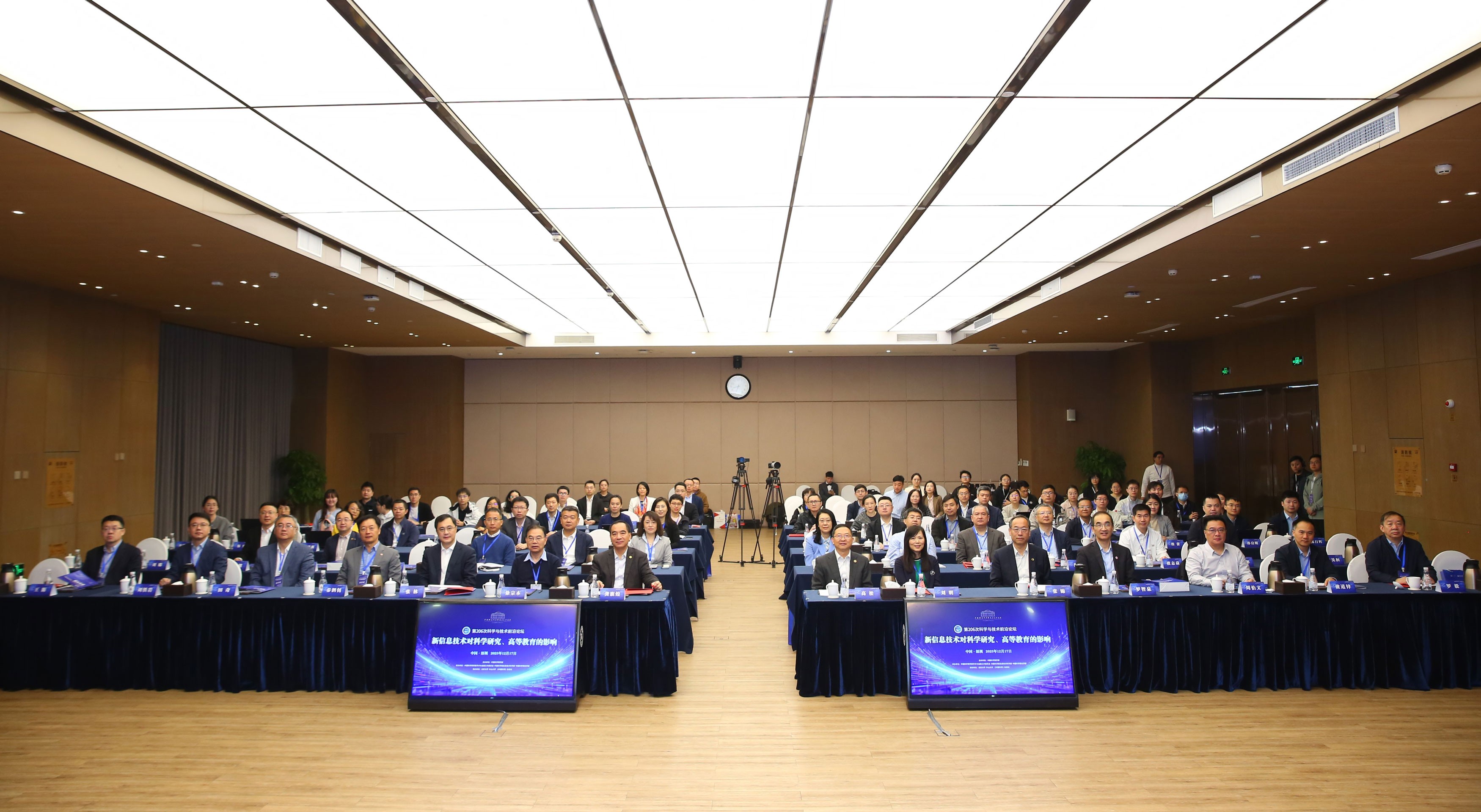 近日,中国科学院学部第206次科学与技术前沿论坛“新信息技术对科学研究、高等教育的影响”在深圳举办。北京大学校长龚旗煌院士,中山大学校长高松院士共同担任执行主席。来自北京大学、清华大学、复旦大学、中山大学、华为、科大讯飞、云蝶科技等十余家科研单位及企业共五十余位专家学者参会。