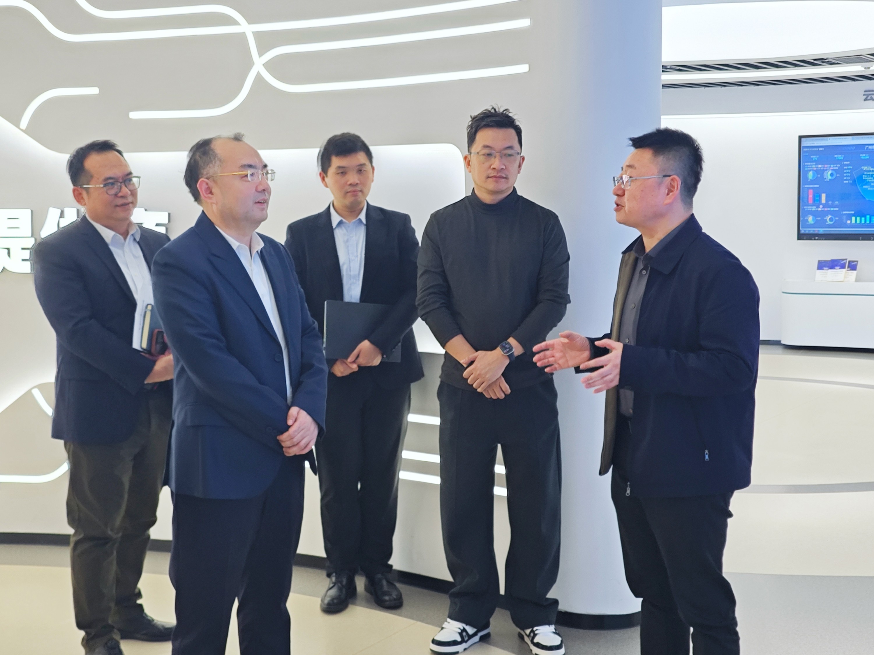 广州银行总行授信审批部副总经理江鹏、科技金融中心总经理杨国建及开发区中心支行行长助理吴高昌、黄埔支行行长黄伟鑫,云蝶科技董事合伙人宋昌庚、财务总监吴全锟陪同参与交流。
