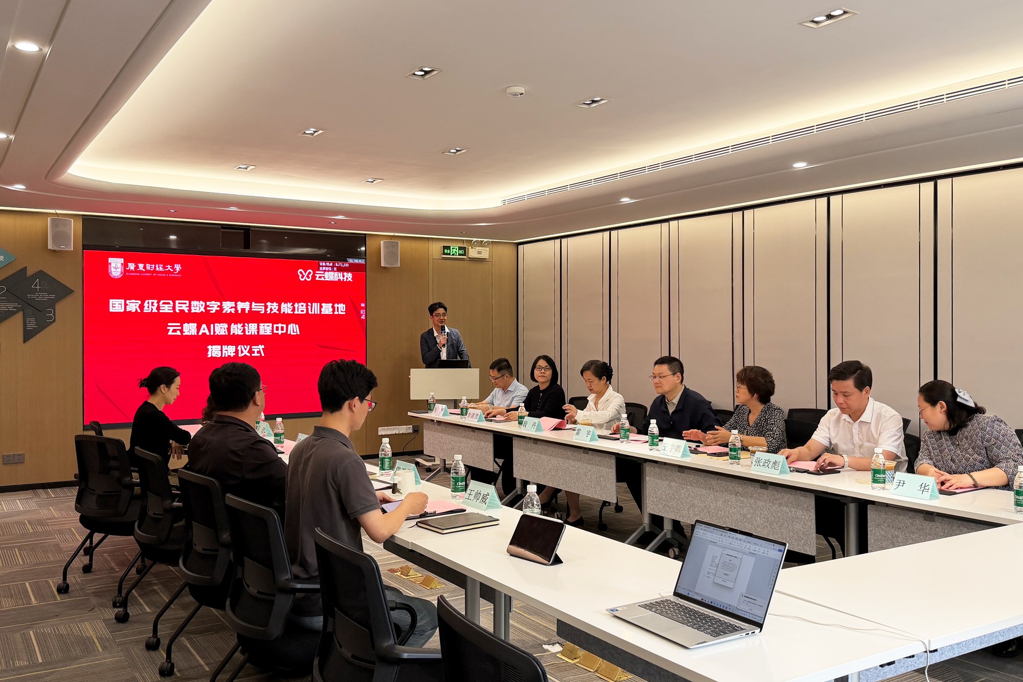 3月19日,由广东财经大学与云蝶科技校企合作共建的“国家级全民数字素养与技能培训基地云蝶AI赋能课程中心”揭牌仪式在云蝶科技总部举行。广东财经大学副校长雷宇、校友工作与社会合作办公室主任段丹、全民数字教育学院院长王宇晖、继续教育学院党总支书记张政彪,云蝶科技常务副总裁刘丽丽、副总裁罗崇键等双方领导出席活动,共同见证这一深化产教融合的重要时刻。