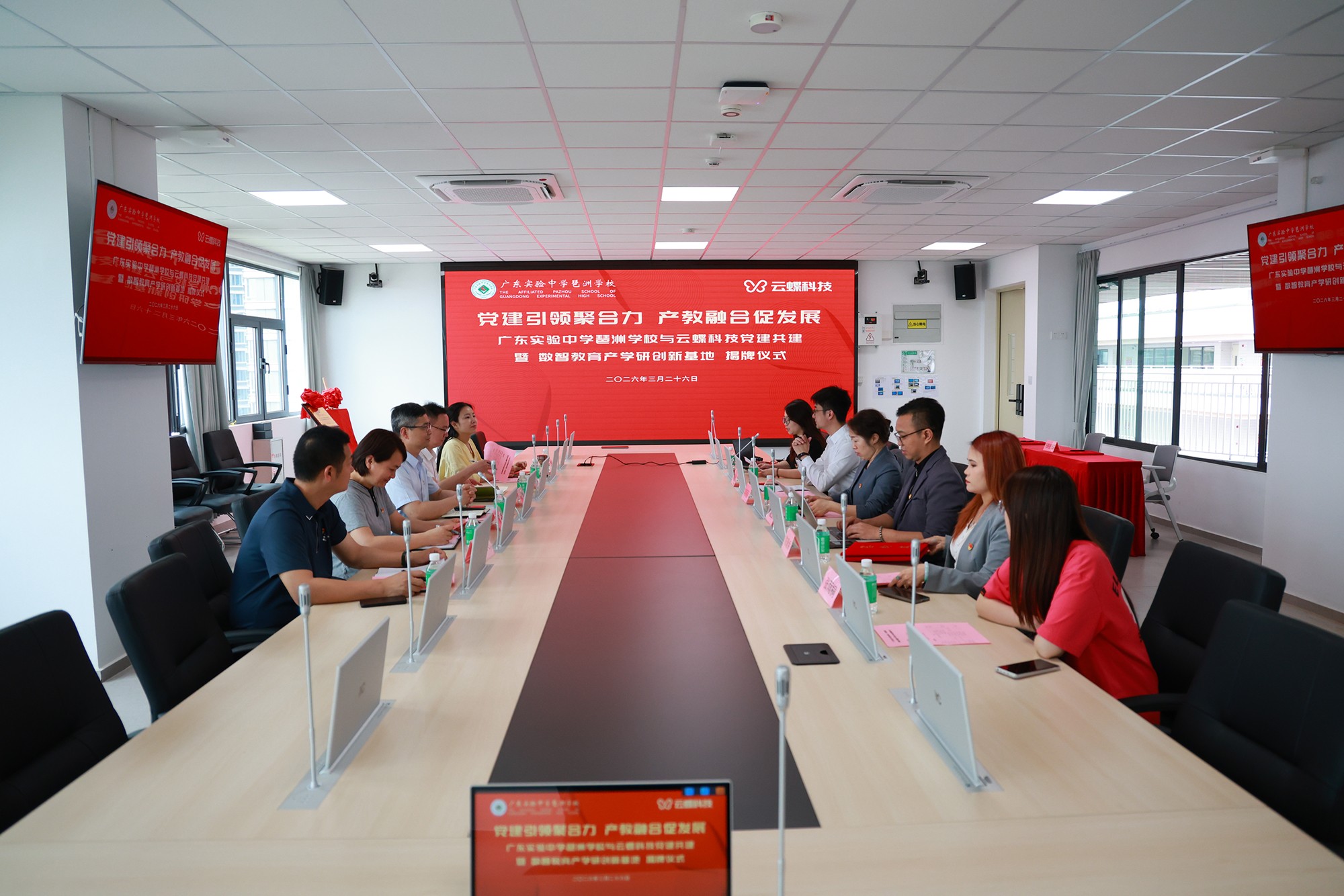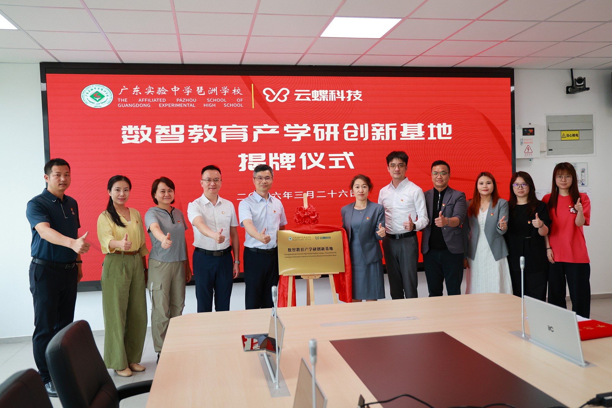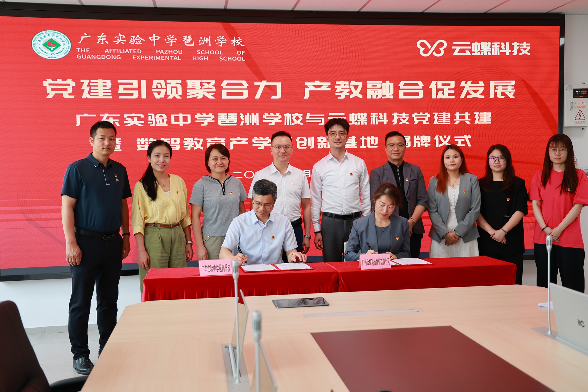 3月26日,云蝶科技与广东实验中学琶洲学校(简称省实琶洲学校)隆重举行党建共建暨数智教育产学研创新基地揭牌活动。双方以党建为引领,开启校企合作新篇章。省实琶洲学校党支部书记、校长钟民,云蝶科技常务副总裁刘丽丽博士、党支部书记罗崇键等共同出席。