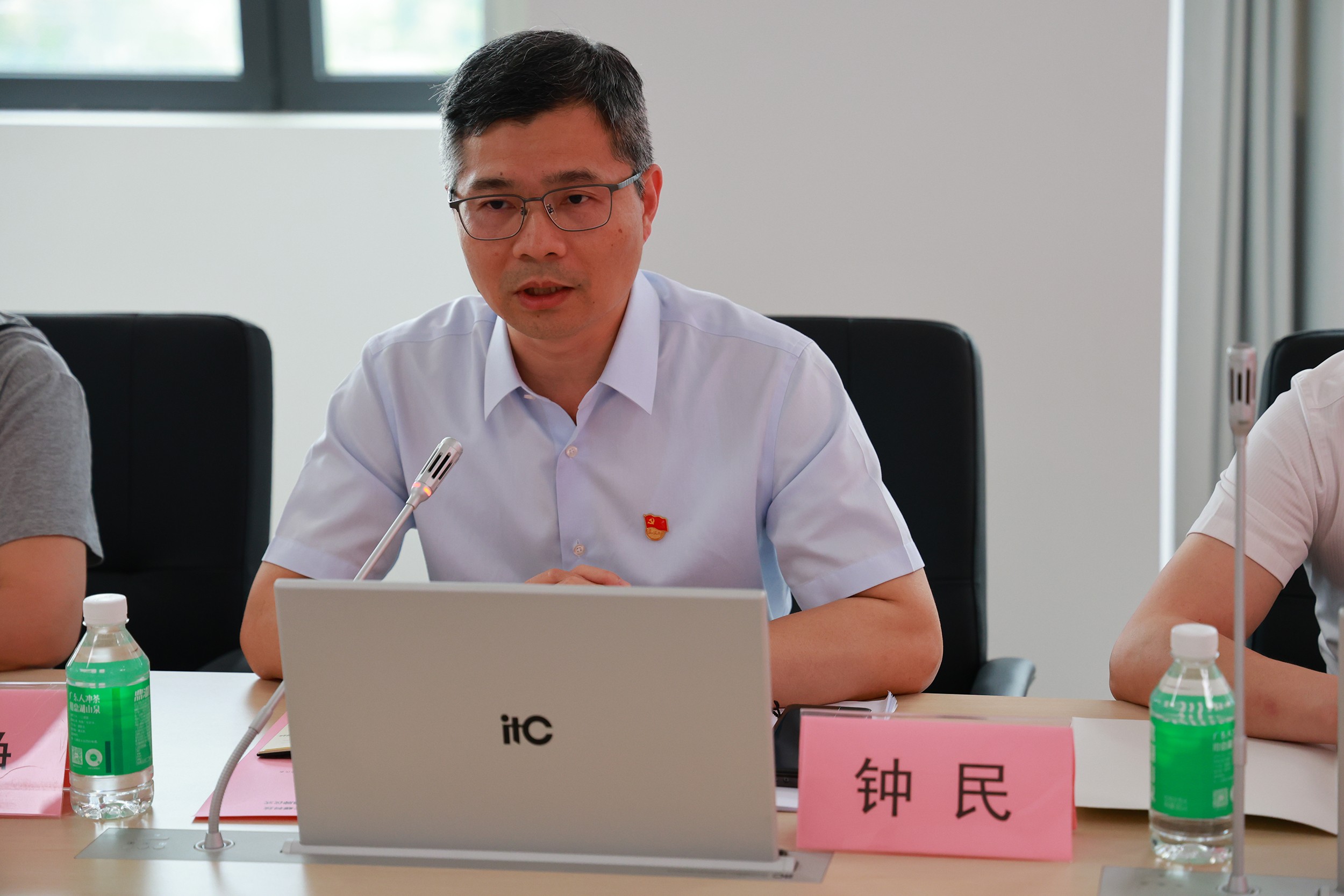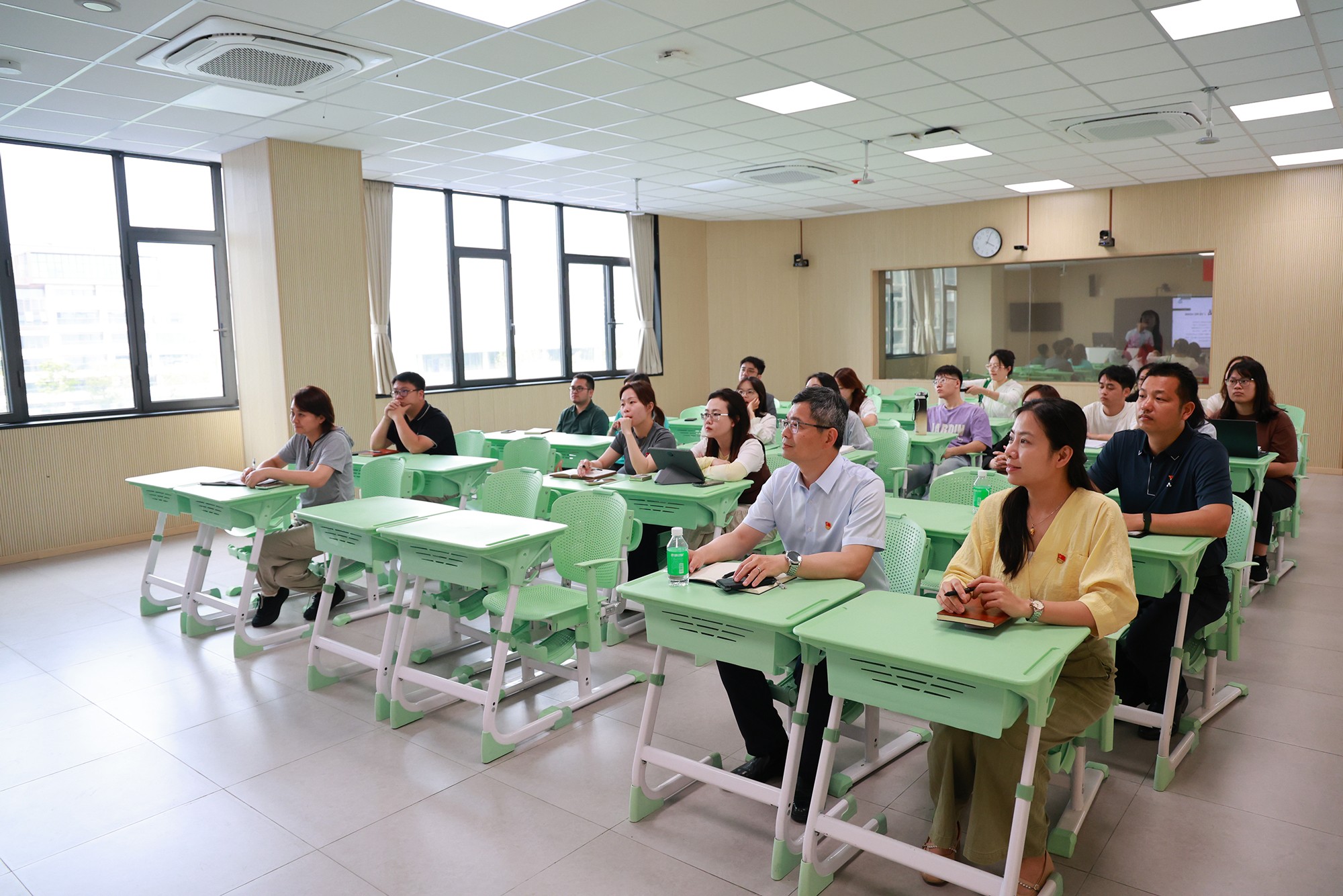 座谈交流中,钟民对云蝶科技长期以来的支持表示感谢,并分享了学校党建工作开展情况以及在党建引领下推进教育教学改革的实践探索。随后,罗崇键介绍了云蝶在智慧教育、AI技术应用等领域的创新成果及企业党建工作经验。他表示,此次共建将成为校企双方优势互补、协同创新的良好开端。刘丽丽博士在产学研合作发言中指出,双方将重点围绕基础教育教学实践、人才培养、教学场景落地等方面充分开展合作,推动教育成果转化与数智教育发展。